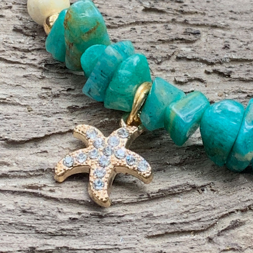 Sand Jasper + Chrysoprase Gemstones w Gold Rhinestone Starfish, Clasp + Spacers