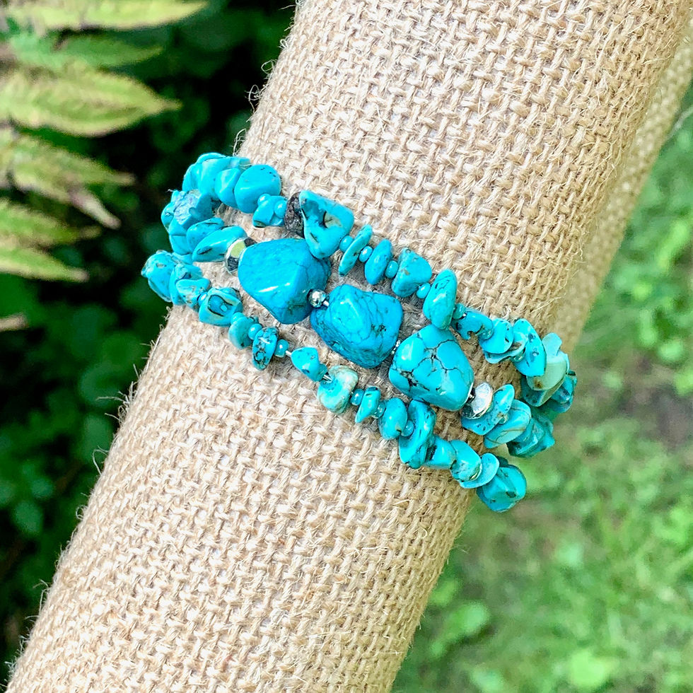 Memory Wire Wrap Bracelet w Turquoise Gemstones + Silver Spacers