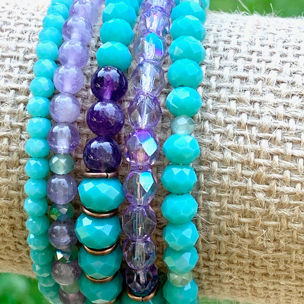 Memory Wire Wrap Bracelet w Amethyst + Agate Gemstones, Glass Beads + Patina Cha