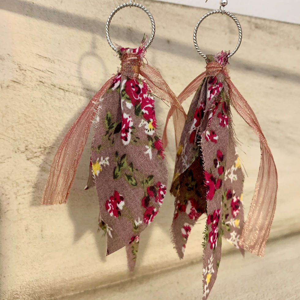 Vintage Boho Fabric Tassel Earrings on Silver Hooks